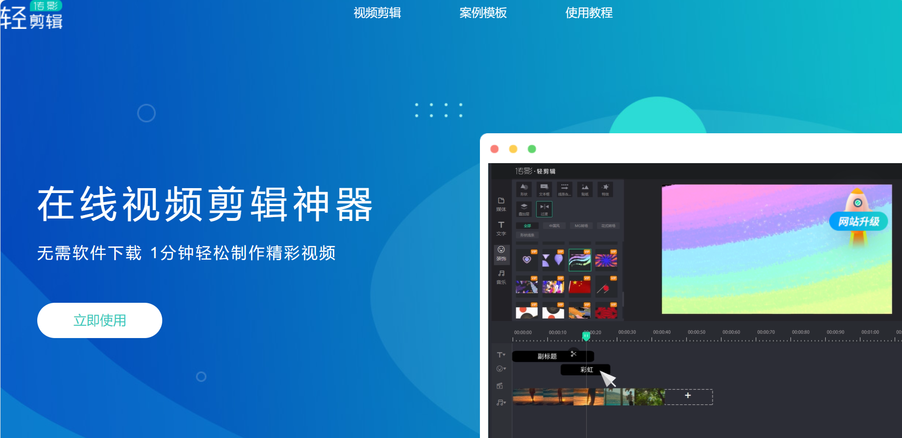 轻剪辑是一款专注于视频剪辑领域的在线视频剪辑神器,无需软件下载1分钟轻松制作精彩视频