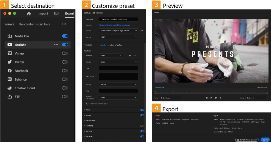 Premiere支持多种视频格式和分辨率的输出,包括高清、4K甚至8K等,用户可以根据需求选择最适合的输出设置。此外,Premiere还提供了丰富的导出选项,包括各种视频编解码器、比特率、帧率等参数的调整,以满足不同平台和设备的要求。