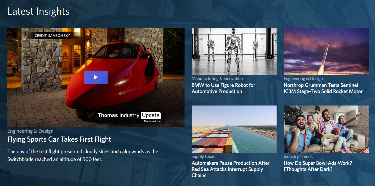 托马斯行业通讯更新每天有 300,000 名读者,并提供赞助机会