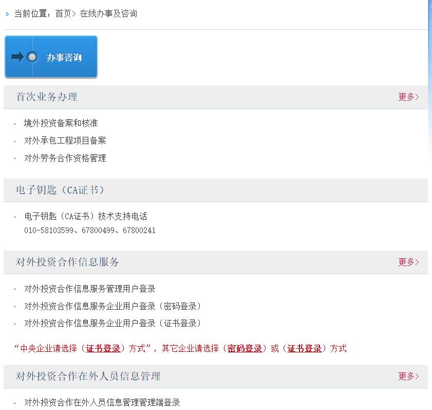 为企业开展“走出去”相关业务提供政策咨询、业务办理、信息共享等公共服务。平台通过多个板块提供服务,包括国别(地区)指南、服务“一带一路”、推进国际产能合作、境外经贸合作区、投资合作促进、统计数据和政策法规及业务指南等。用户登录平台后,可以在线进行境外投资备案和核准,以及对外承包工程项目投标等行政许可业务。