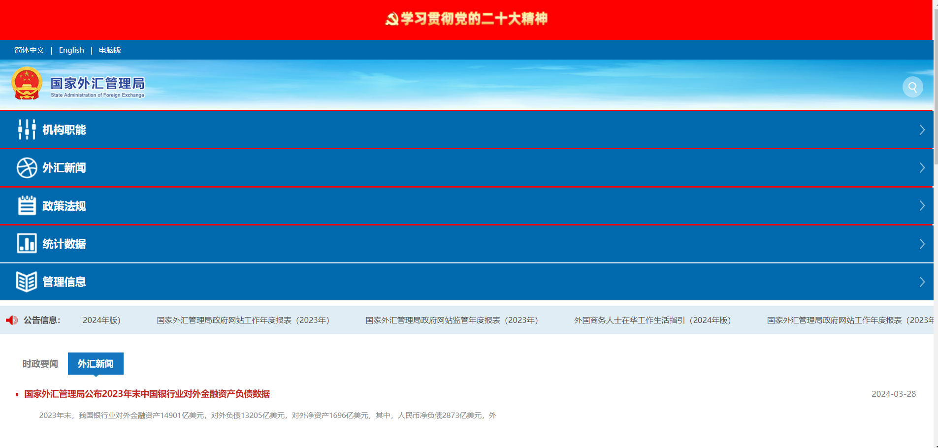 国家外汇管理局(State Administration of Foreign Exchange,简称SAFE)是中国负责外汇管理的国家级机构。