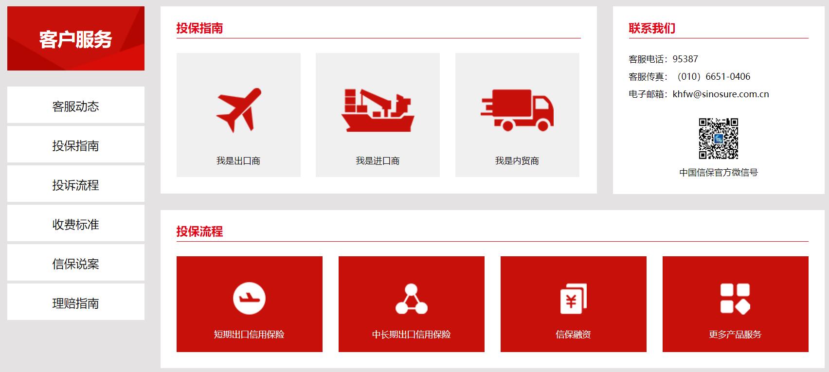 客户服务:中信保提供的客户服务包括客服动态、投保指南、投诉流程、收费标准、保险消费风险提示、信保说案、理赔指南等。