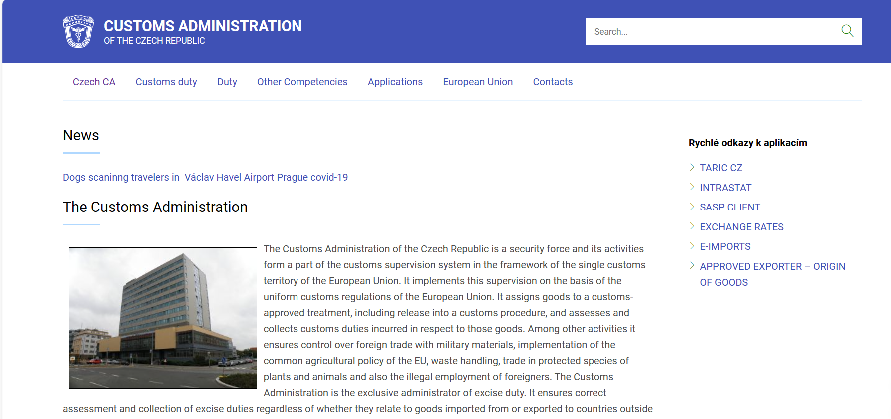 捷克海关是依据本国(或地区)的法律、行政法规行使进出口监督管理职权的国家行政机关。