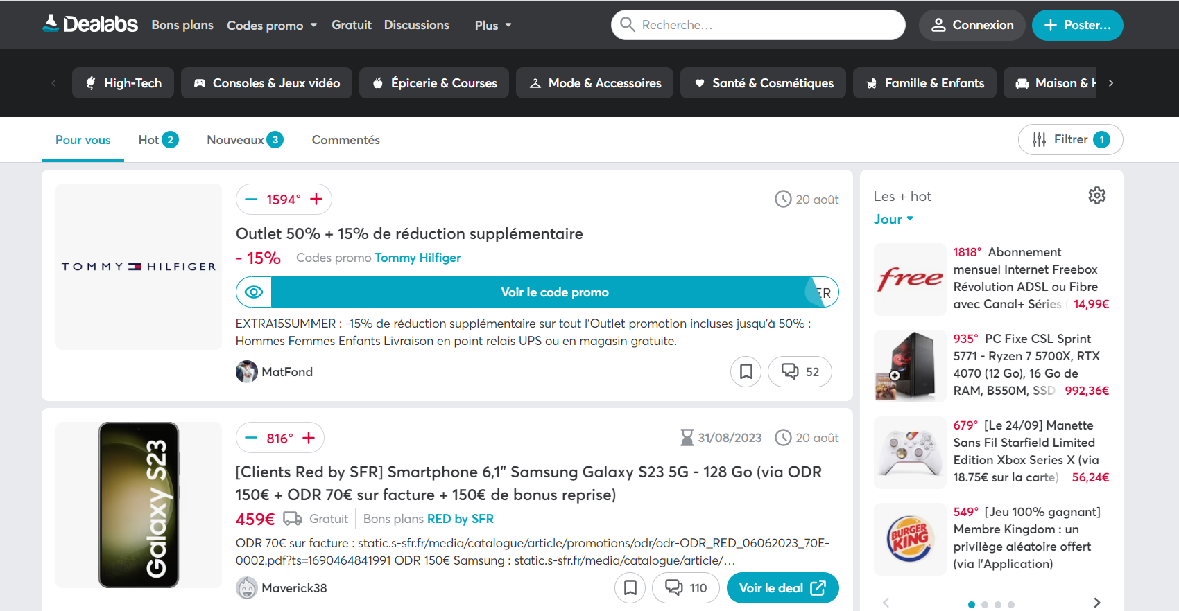 讨论区,这个其实就是之前dealabs的论坛版块,展示的是那些比较多人评论的帖子(主要以活跃度为参考指标)