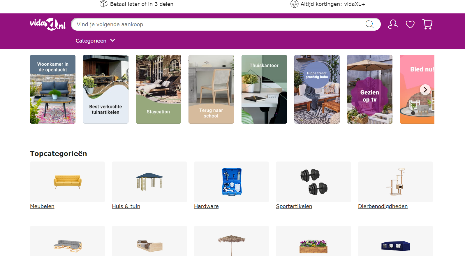VidaXL是一家国际在线零售商,在这里您可以为你的家、花园、车库和自己动手项目找到所需的一切,平台的理念是基于提供广泛的产品,使人们能够“少花钱”。