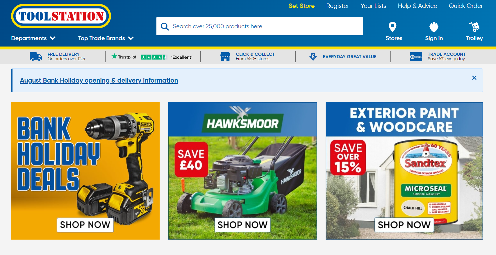 Toolstation为客户提供多渠道购物方式。您既可以在网上浏览和购买他们的产品,也可以前往全国550多家分支机构的商店逛逛,并找到所需的商品。