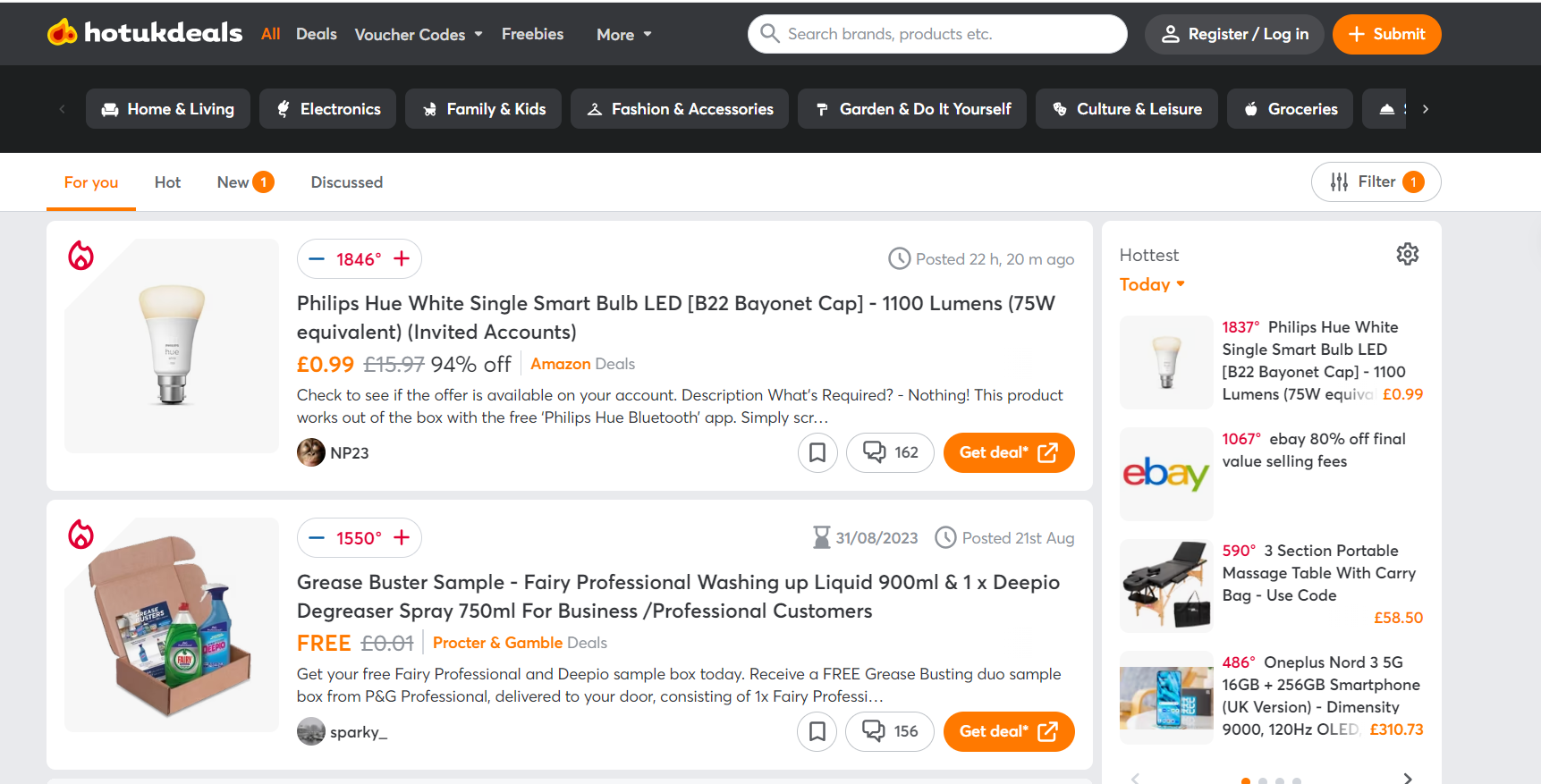 HotUKDeals是一个带有论坛性质的折扣网站,用户分享他们的故事,优惠,优惠券和提示的地方。HotUKDeals是全球最大的deal社区Pepper 组成部分。