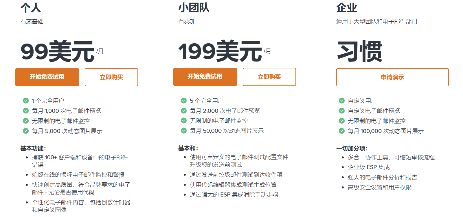 Litmus设置了多档定价,几乎可以满足不同群体一切不同的需求。