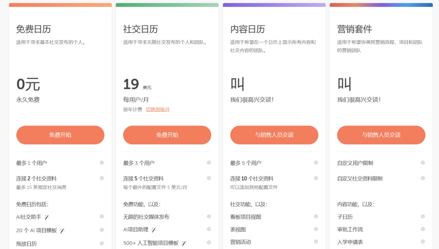 对 CoSchedule 的访问按月和按年出售。CoSchedule 提供一系列付费计划。以下数字假设按月付款。您可以获得年度计划的折扣。