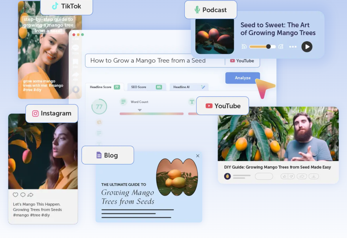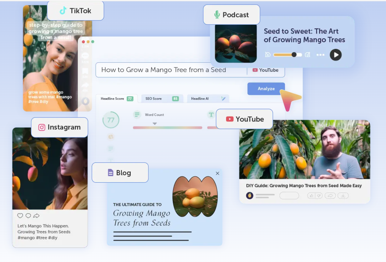 唯一一款由 AI 和数据驱动反馈提供支持的标题分析器,可生成针对参与度和 SEO 优化的标题。