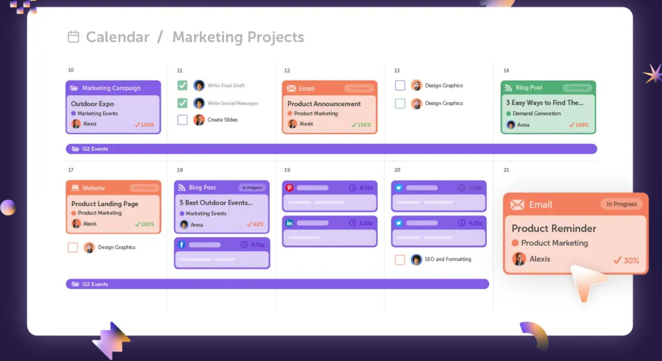 一个完全可定制的营销日历,让您全面了解所有任务、项目和活动。