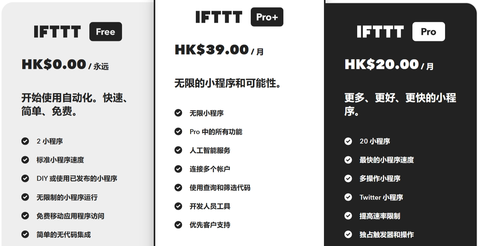 IFTTT设置了多档不同的定价,几乎可以满足您的一切需求。