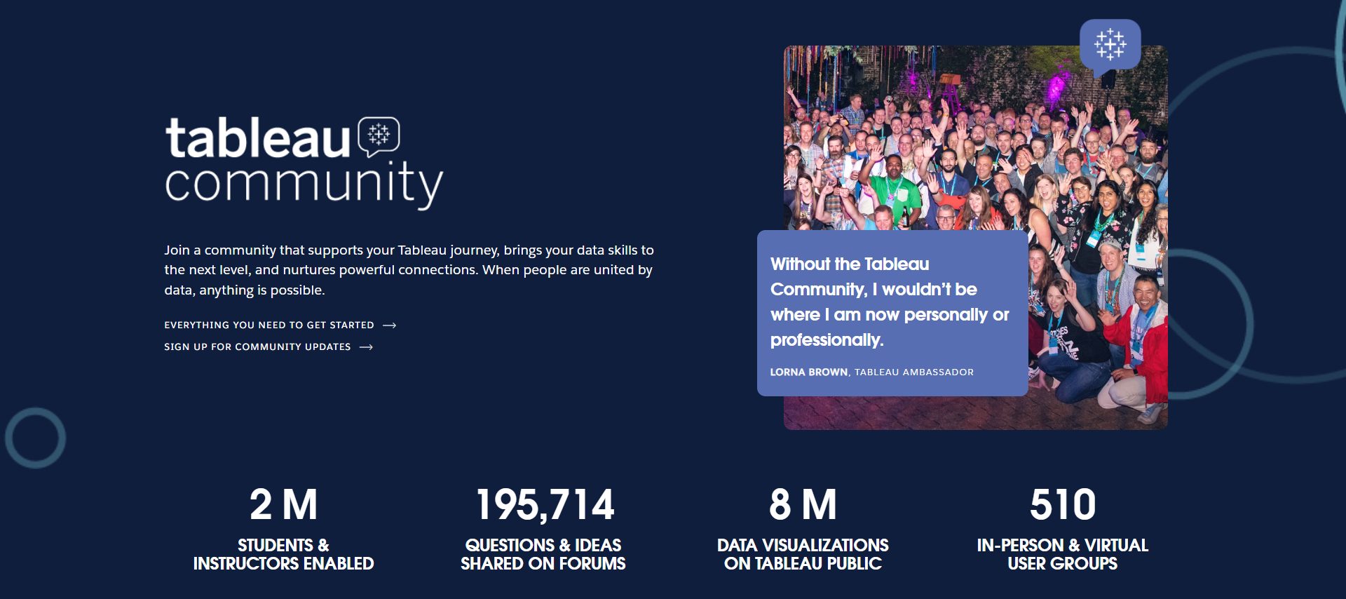 Tableau 社区: Tableau 强调其社区的重要性,拥有超过一百万的成员。该社区是连接志同道合的个体,学习、成长和获得启发的中心。它为用户提供了一个协作的空间,分享见解和经验,促进全球范围内的连接和共同学习。