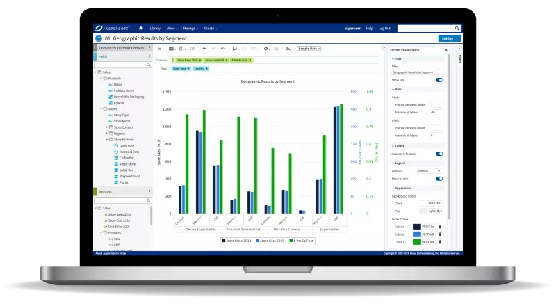 跨行业和多部门: 由于 Jaspersoft 的灵活性,它适用于各种行业,包括零售、金融、医疗保健、制造等。不同部门,如财务、市场营销、销售和运营,都可以受益于 Jaspersoft 的报告和分析功能。
