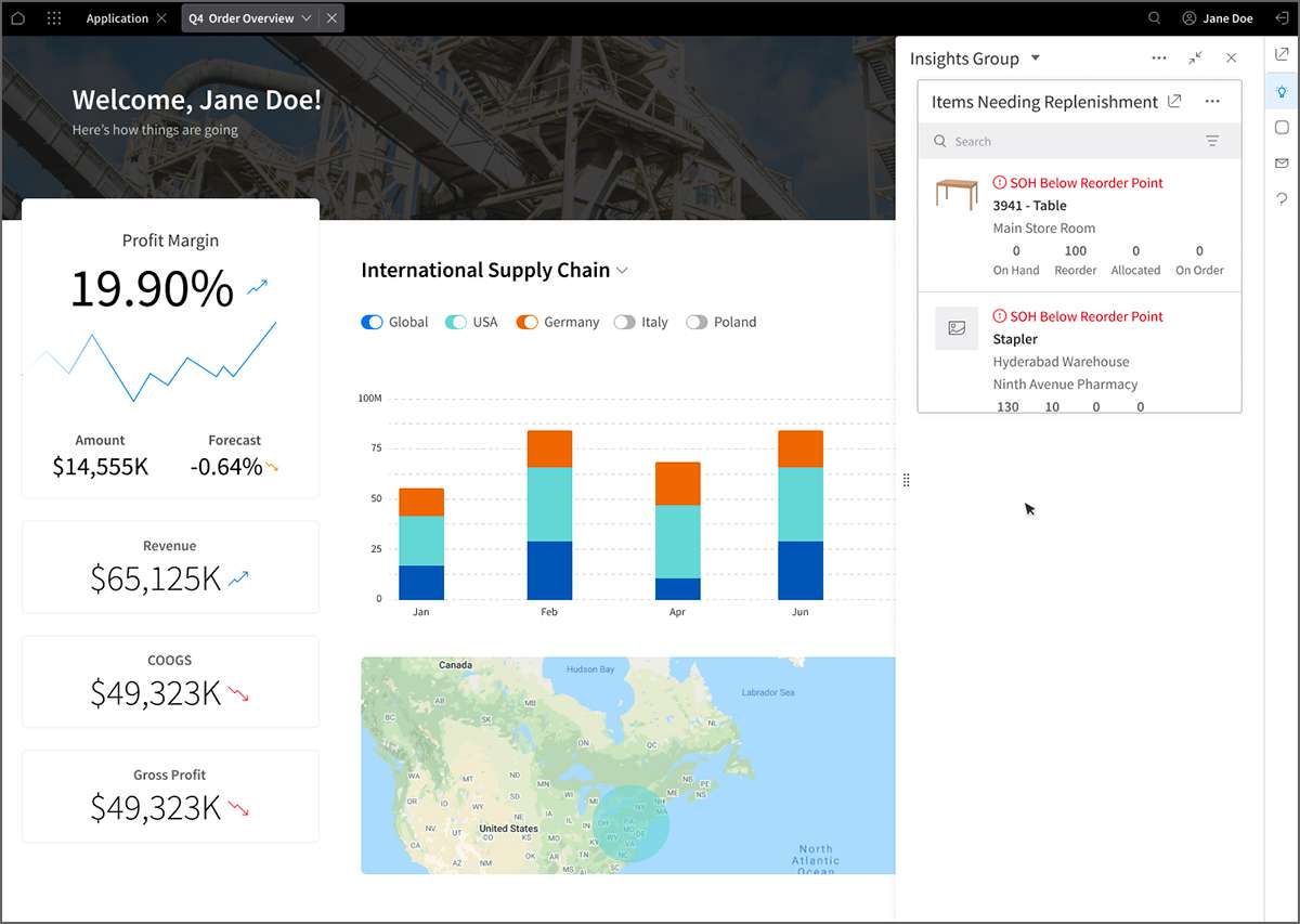 分析与报告: Infor 致力于通过分析与报告组件帮助企业更好地运营业务。通过行业特定的重要指标,这一组件提供了深入的数据分析,使企业能够深入了解业务运作情况,从而更明智地制定战略和决策。