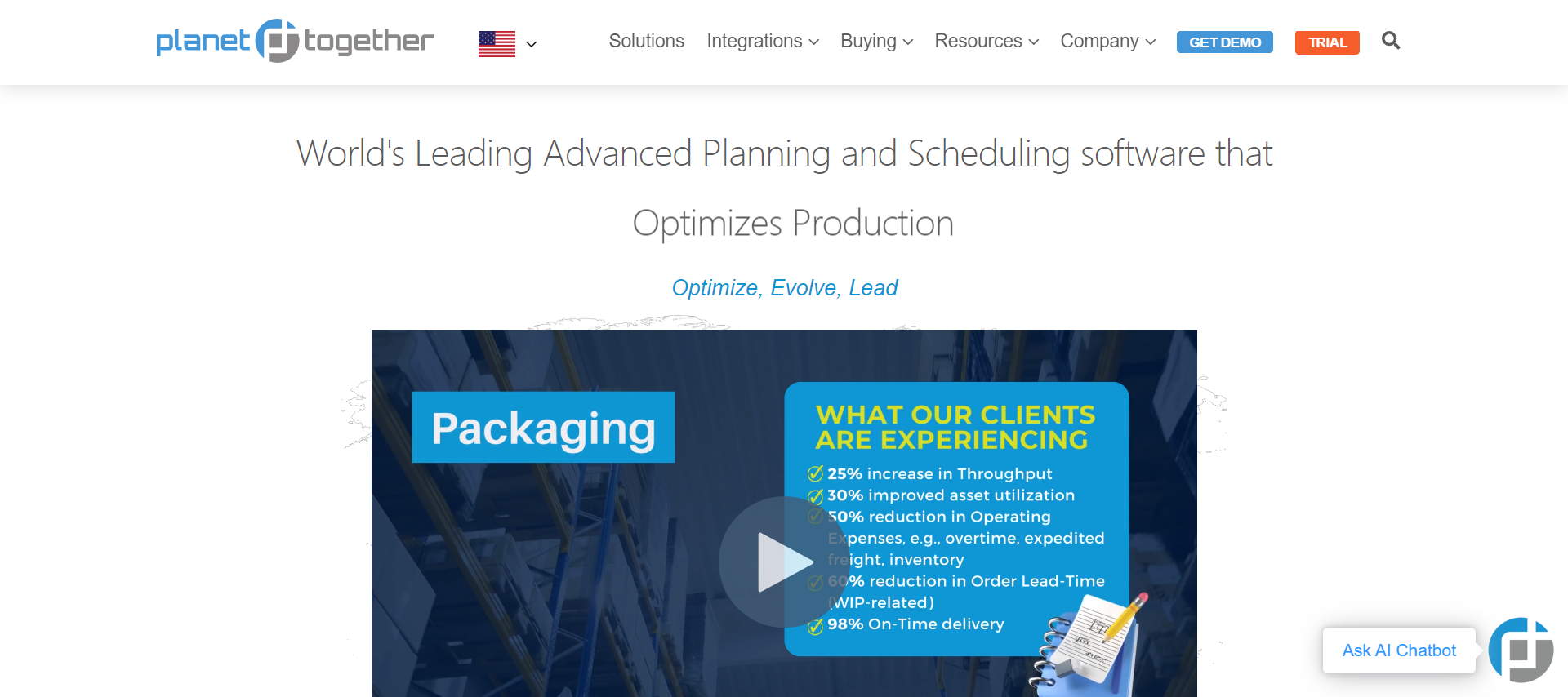 PlanetTogether 是一款先进的计划与排程(APS)软件,旨在优化生产管理的各个方面。该软件提供了快速而灵活的产能规划、生产排程以及与现有 ERP 系统集成的物料需求计划(MRP)功能。
