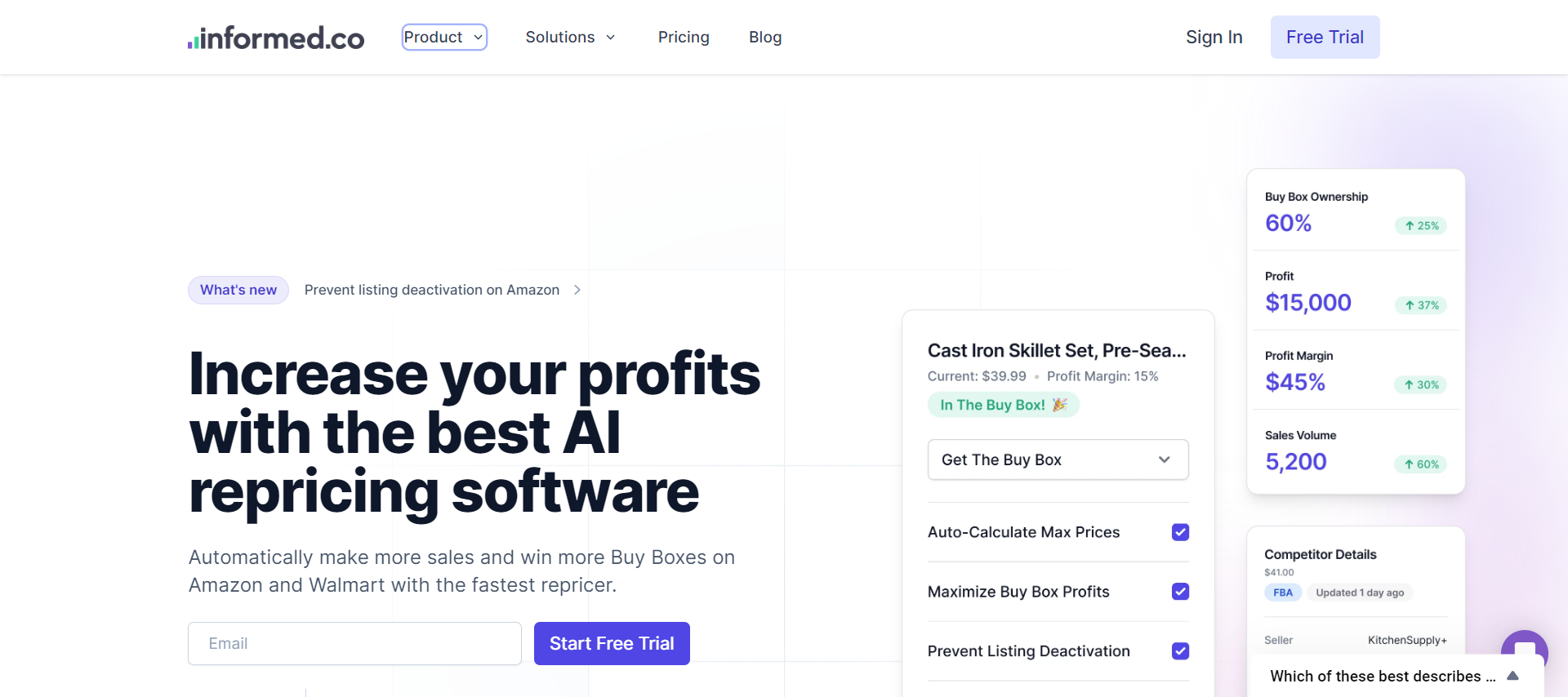 对于从事自有品牌销售的卖家,Informed 提供了自动调整价格以应对市场变化的解决方案。这确保了自有品牌产品保持竞争性定价,使卖家能够迅速适应不断变化的市场动态,保持盈利能力。