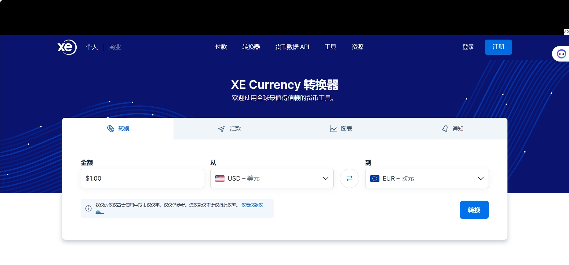 此在线工具是由XE.com推出的免费在线货币转换器。查看实时费率、安全汇款、设置费率提醒、接收通知等。TrustPliot 综合4.5分。