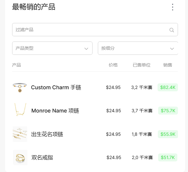 获取数据和灵感,了解您接下来应该推出的产品。产品级见解包括销量、发布量和类别。在所有商店中按关键字搜索产品。