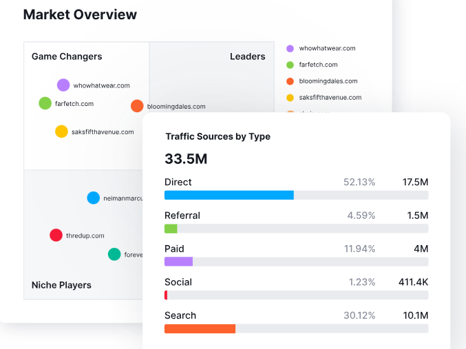 分析任意网站的流量,揭示竞争对手的推广策略,获得意见来增加您的市场份额,发现关键词和反向链接差异