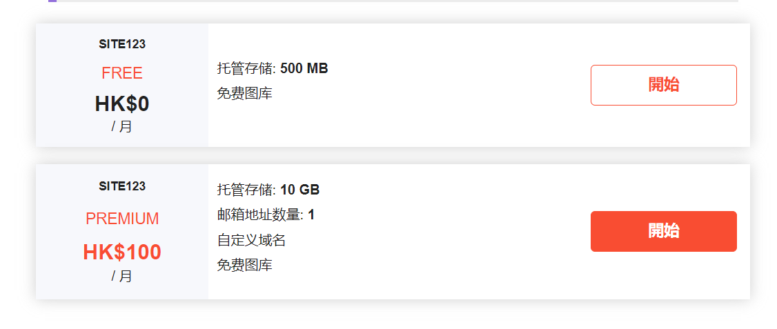 免费方案主要限制在于其仅包含有限的电子商务功能、联繫表单内容不会直接邮寄给你、你无法拥有自己的独特域名,且SITE123的商标框将出现在每个页面上。虽然免费方案对个人网站来说已足够,但这些小细节绝对会降低专业网站的品质,因此你需要为你的商业网站购买付费的进阶方案。