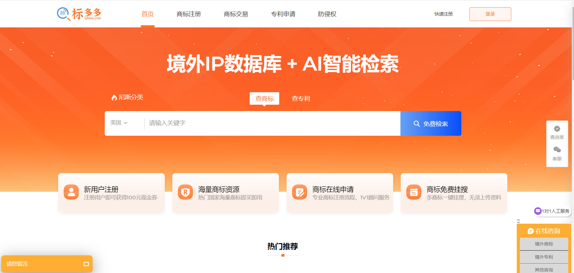 开放全球化知识产权业务,覆盖商标检索、注册、出售、版权登记、专利等服务,满足您的需求。