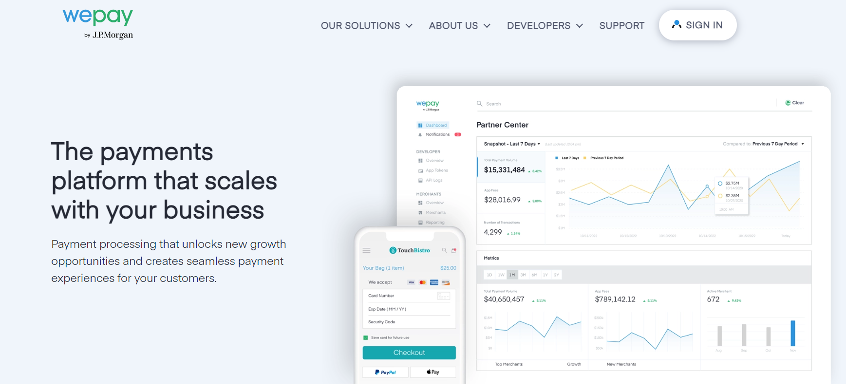 摩根大通于 2017 年收购了 WePay,将Wepay的金融科技技术与排名第一的商户收单机构的实力和安全性结合起来 和排名第一的发卡机构 在美国。现在,Wepay的 Link、Clear 和 Core 产品规模不断扩大,从推荐到白标支付网关,再到 payfac 体验。凭借支持 Chase QuickAccept SM 的当日存款和技术,不断为集成支付处理和集成银行解决方案带来创新、规模和可靠性。