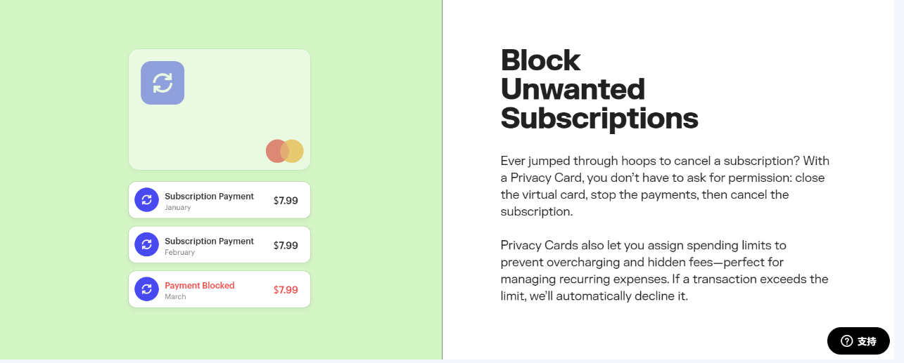 在虚拟卡上看到您不认识的费用?请联系Privacy专家支持团队,如果发生欺诈性收费,Privacy将代表您处理案件。