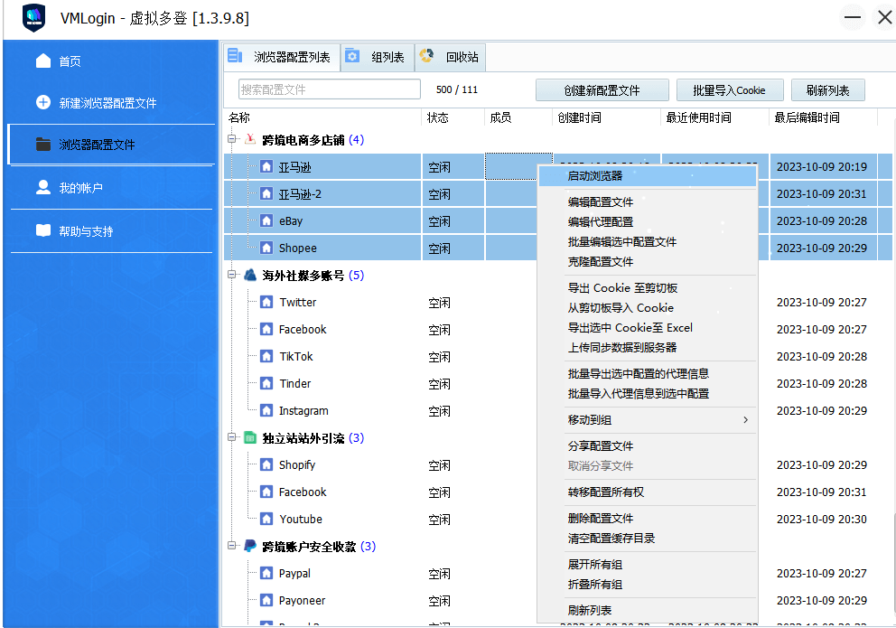 VMLogin指纹浏览器可在同一个电脑上同时生成并打开多个防关联浏览器,大大提高多平台多账号批量管理的效率。