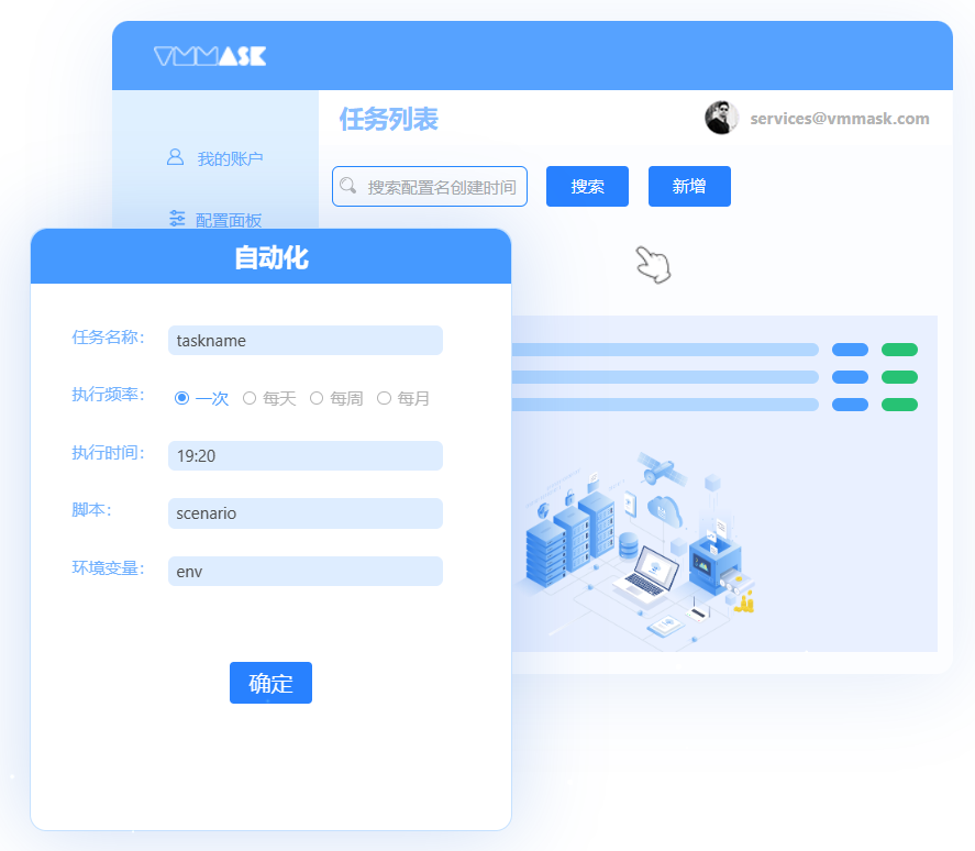 VMMask浏览器程序模拟人工操作, 大量账号一键进行批量操作,任何具有重复性的工作都可以在VMMask中通过自动化程序被完成;