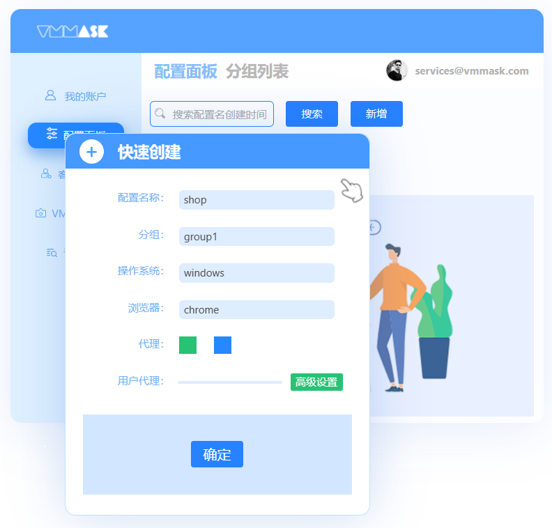 登录vmmask客户端创建浏览器配置,启动干净环境的浏览器配置