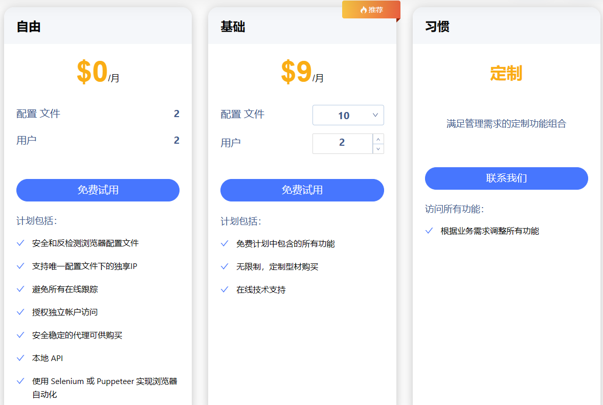 MoreLogin设置了多档定价,分为免费版、基础版和高级版,选择适合您需求的增值计划。