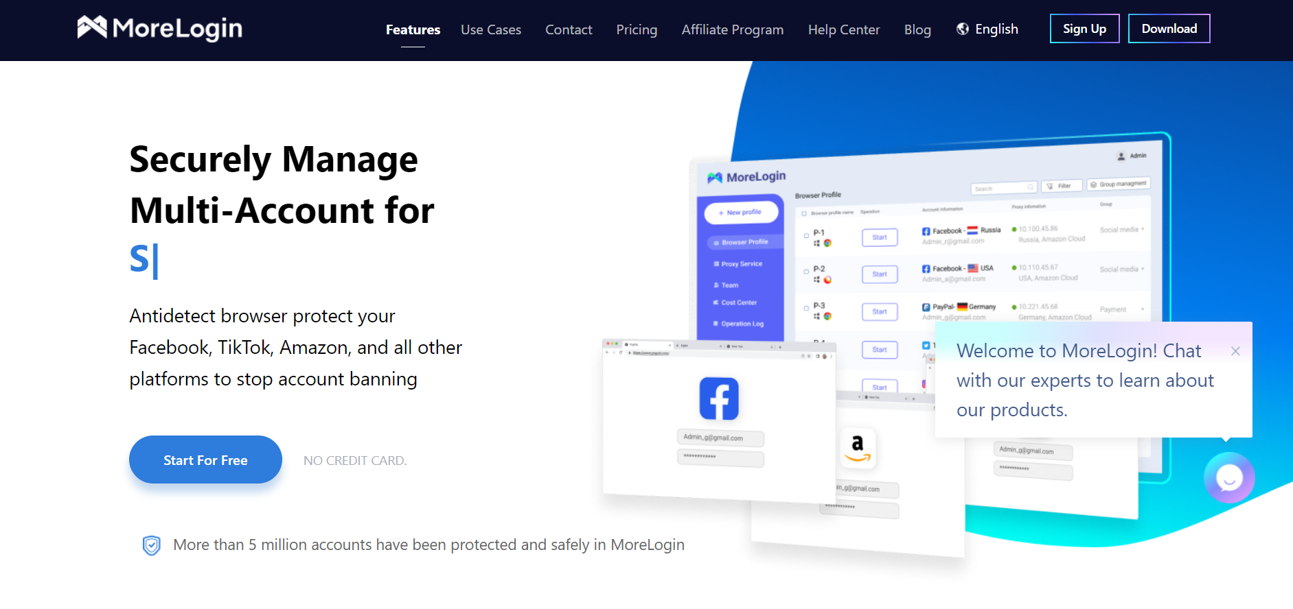 安全地管理多账户,保护您的Facebook、TikTok、Amazon和所有其他平台,可免费体验