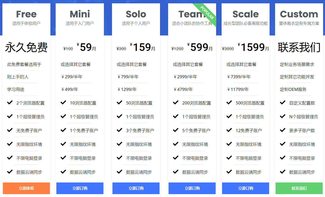 SMLOGIN设置了多档定价,分为免费版、入门版、个人版、团队版、组织版和企业版。