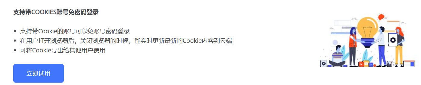 在用户打开浏览器后,关闭浏览器的时候,能实时更新最新的Cookie内容到云端,可将Cookie导出给其他用户使用。