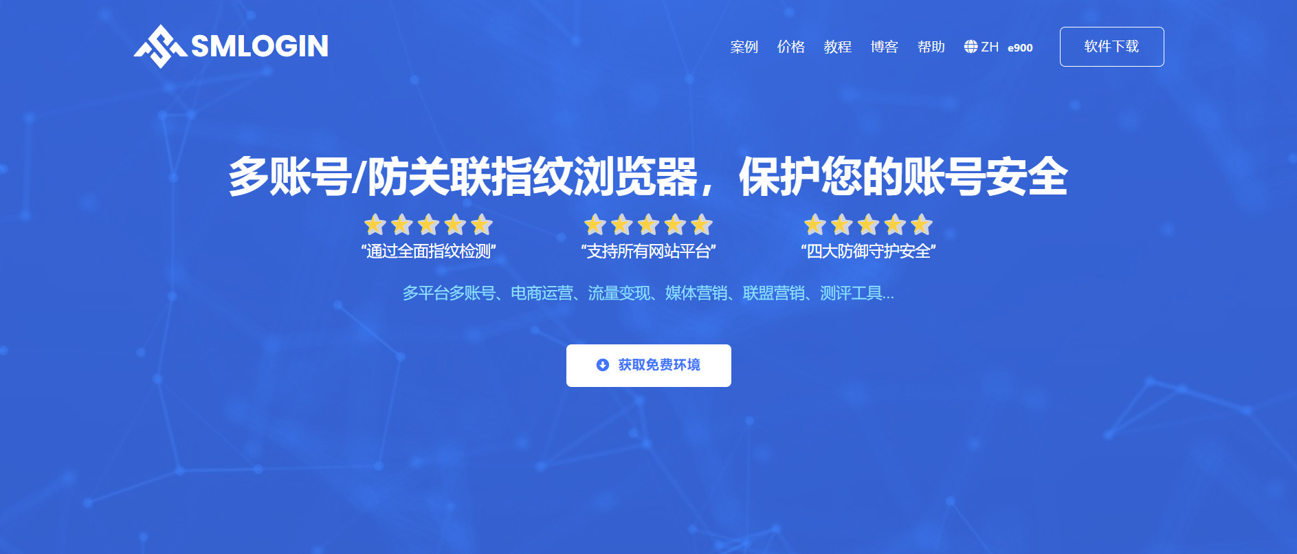 SMLOGIN,基于全球最流行的浏览器内核深度开发,允许在不同的独立环境之间切换,并通过安全防干扰通讯等多项技术,深入优化全面提升加载速度,简易,安全,高效提升运营效率。在 SMLOGIN,您可以构建完全独特的东西,用虚拟浏览器配置文件取代对多台计算机的需求。这使得扩展在线业务和基于浏览器的 Web 自动化应用程序对客户来说变得轻而易举。