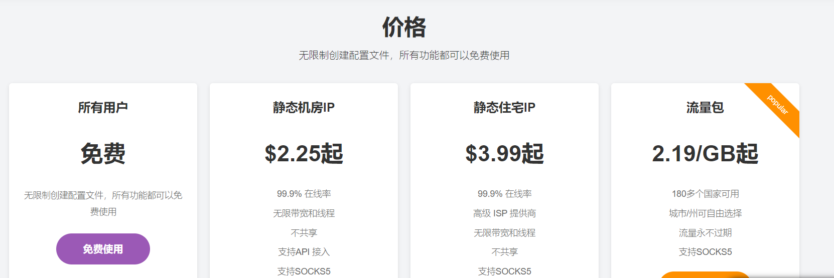 ixBrowser对所有用户开放功能免费使用,对额外功能设置了多档定价。