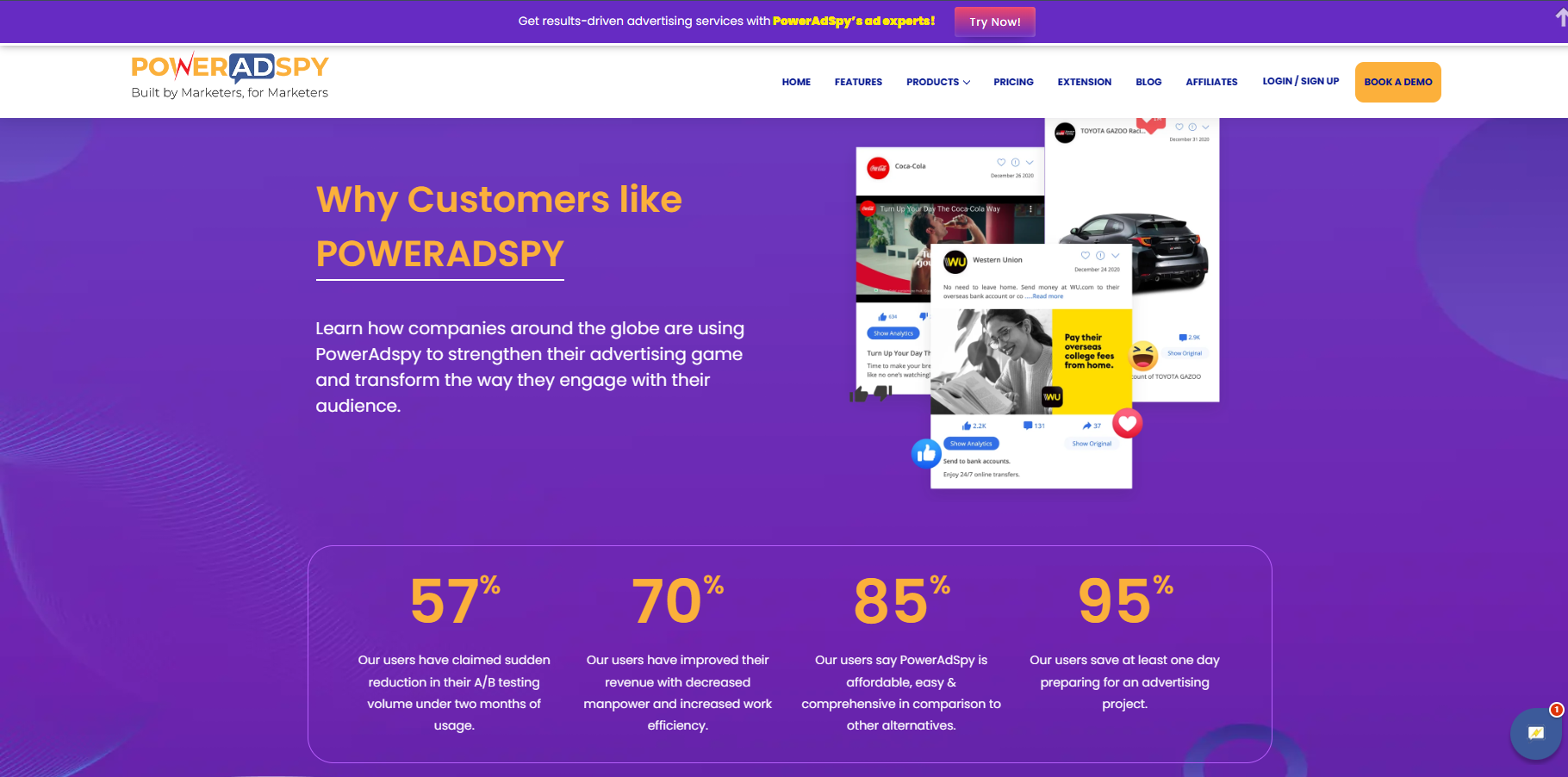 BigSpy4.61美元试用3天,专为广告制作、广告投放、电商选品、市场调研人员设计的成熟、可靠、灵活的竞品广告SPY工具