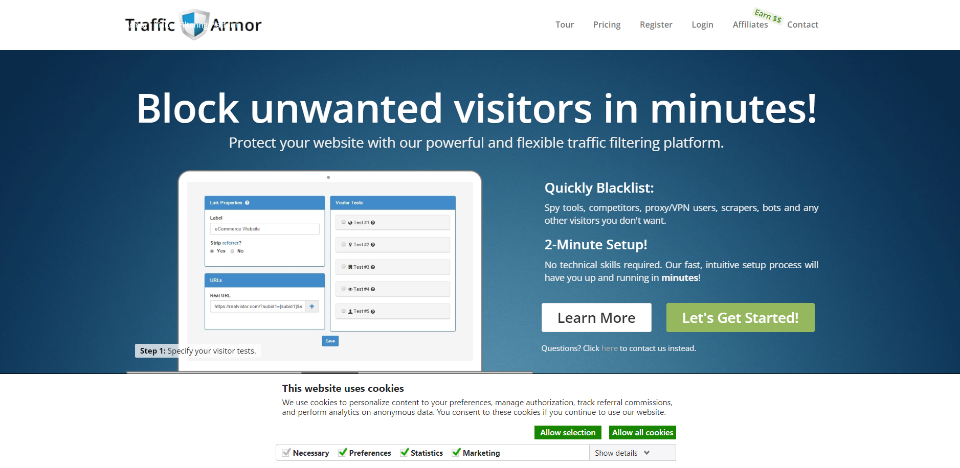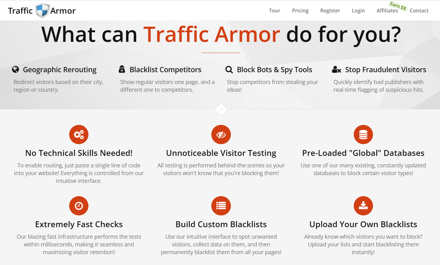 “Ttraffic Armor,可以在几分钟内阻止不需要的访客”;