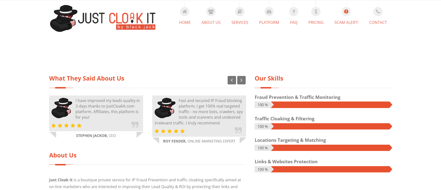 Just Cloak It是一项针对 IP 欺诈预防和流量伪装的精品私人服务,专门针对有兴趣通过保护链接和减少欺诈流量来提高潜在客户质量和投资回报率的在线营销人员。