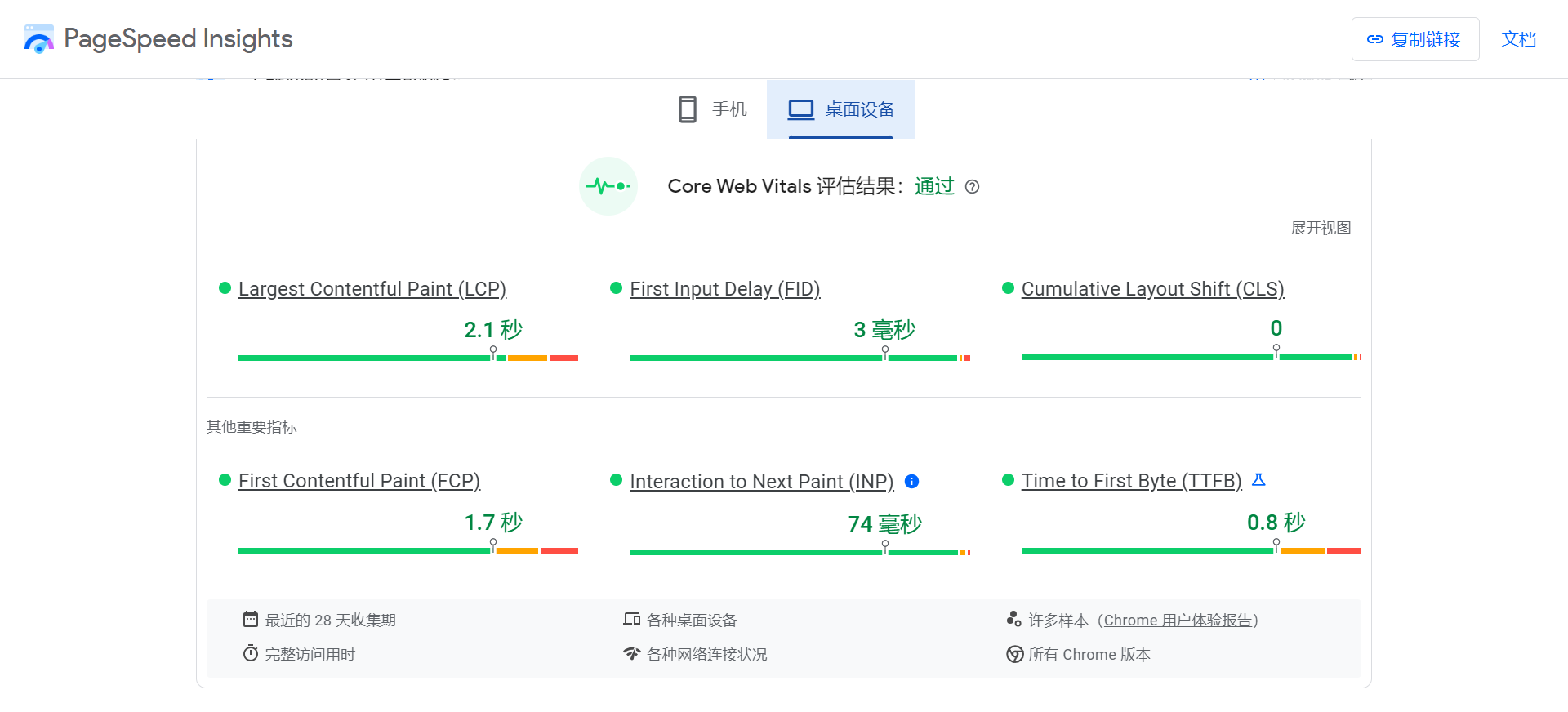 提供了针对桌面端和移动端设备的评估,因为这两者的性能需求和网络环境可能有所不同,使开发者能够为不同设备优化网页。