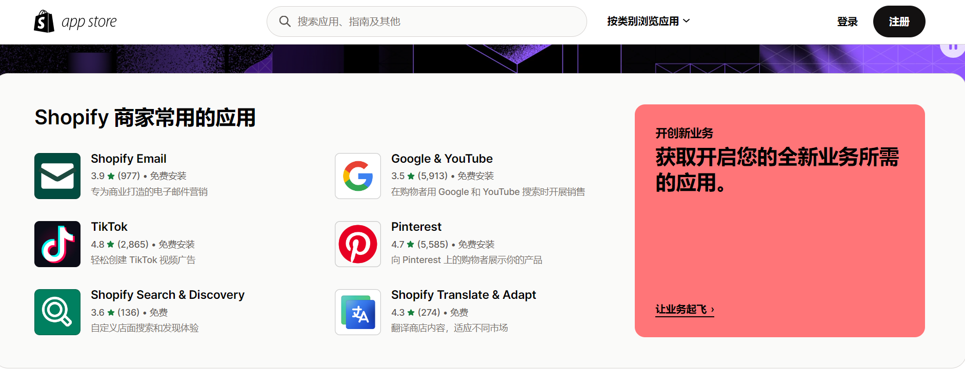 Shopify插件安装量排名工具将各种Shopify插件按照功能和应用场景进行分类,包括营销类、客服类、物流类、支付类、数据分析类等多个分类,商家可以根据自己的需求选择相应的分类进行筛选,更加精准地找到适合自己的插件。