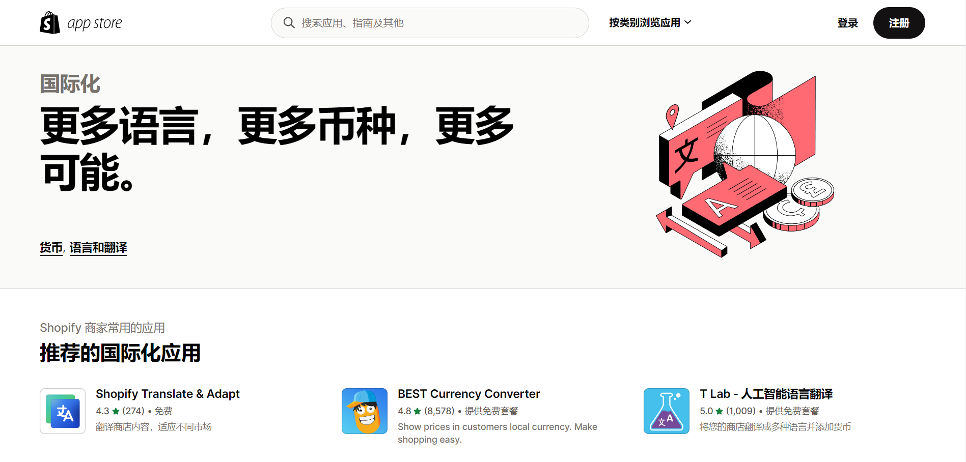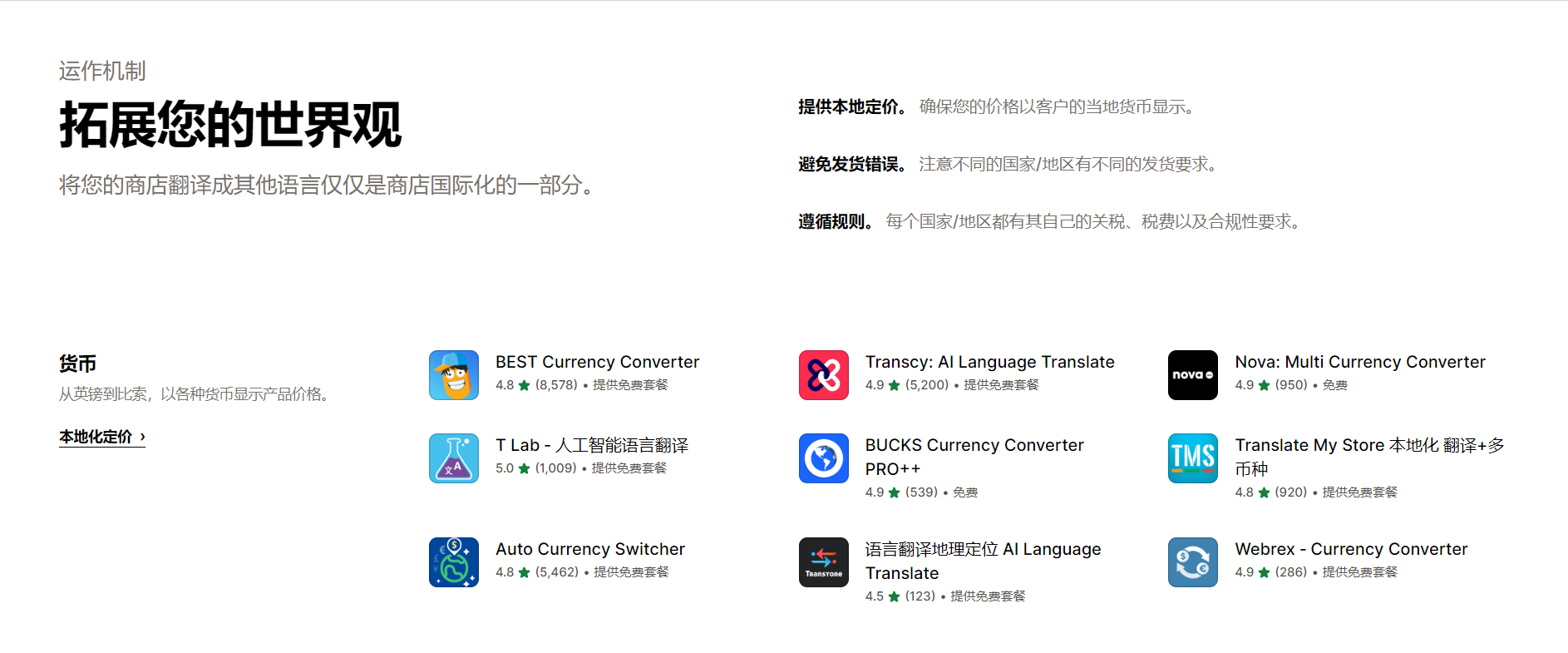 能够根据实时汇率将商店的价格转换为买家所在地的货币,并显示在商品页面和结算页面。