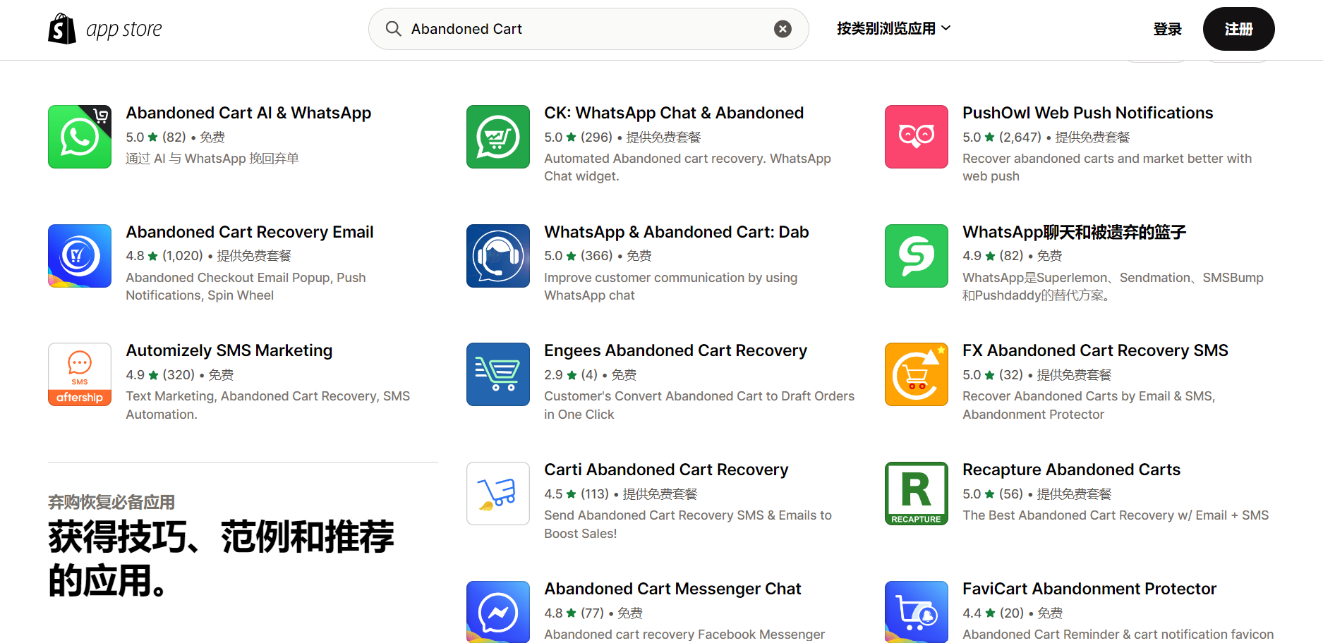 为了解决这个问题,Shopify推出了一款弃购再营销插件,帮助商家最大化利用购物车弃购数据,提高销售转化率。