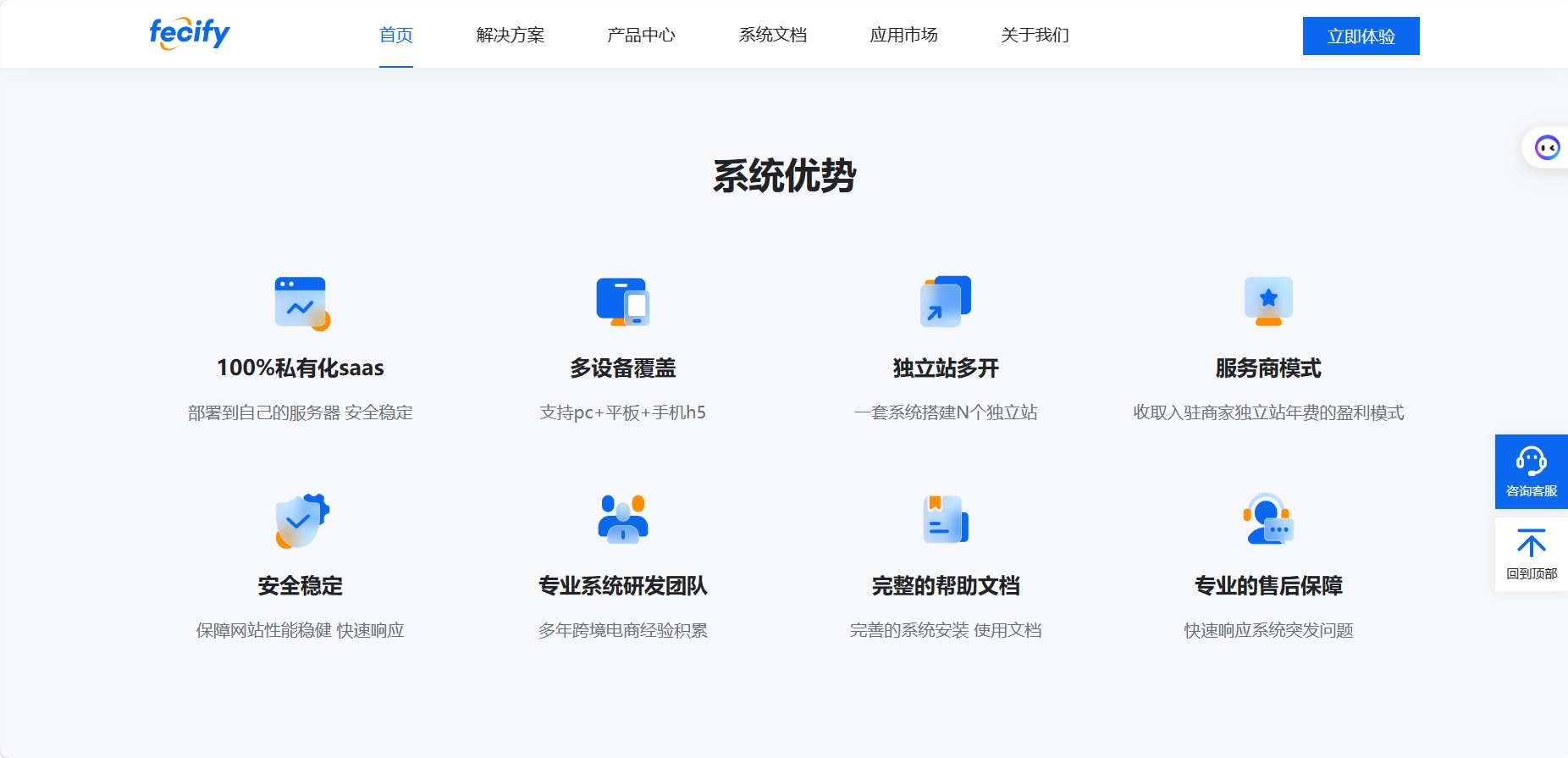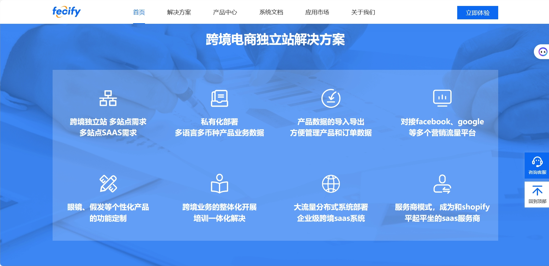 Fecify是一站式自建SaaS模式的电商服务平台,提供电商卖家搭建网店的技术和模板,以及全渠道的营销、售卖、支付、物流等服务。用户可以自己购买服务器,安装到自己的服务器上面,搭建出属于自己的跨境电商SaaS。Fecify可以替代Shopify,满足业务需要。