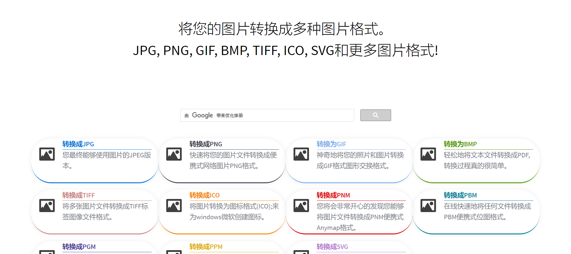 将您的图片转换成多种图片格式,JPG, PNG, GIF, BMP, TIFF, ICO, SVG和更多图片格式!