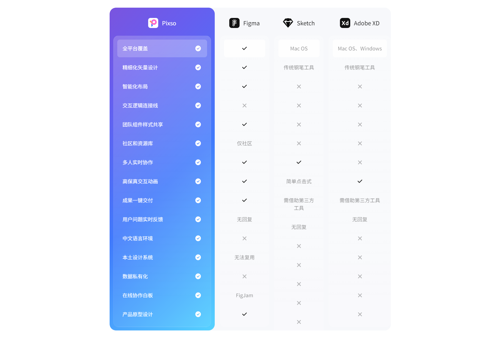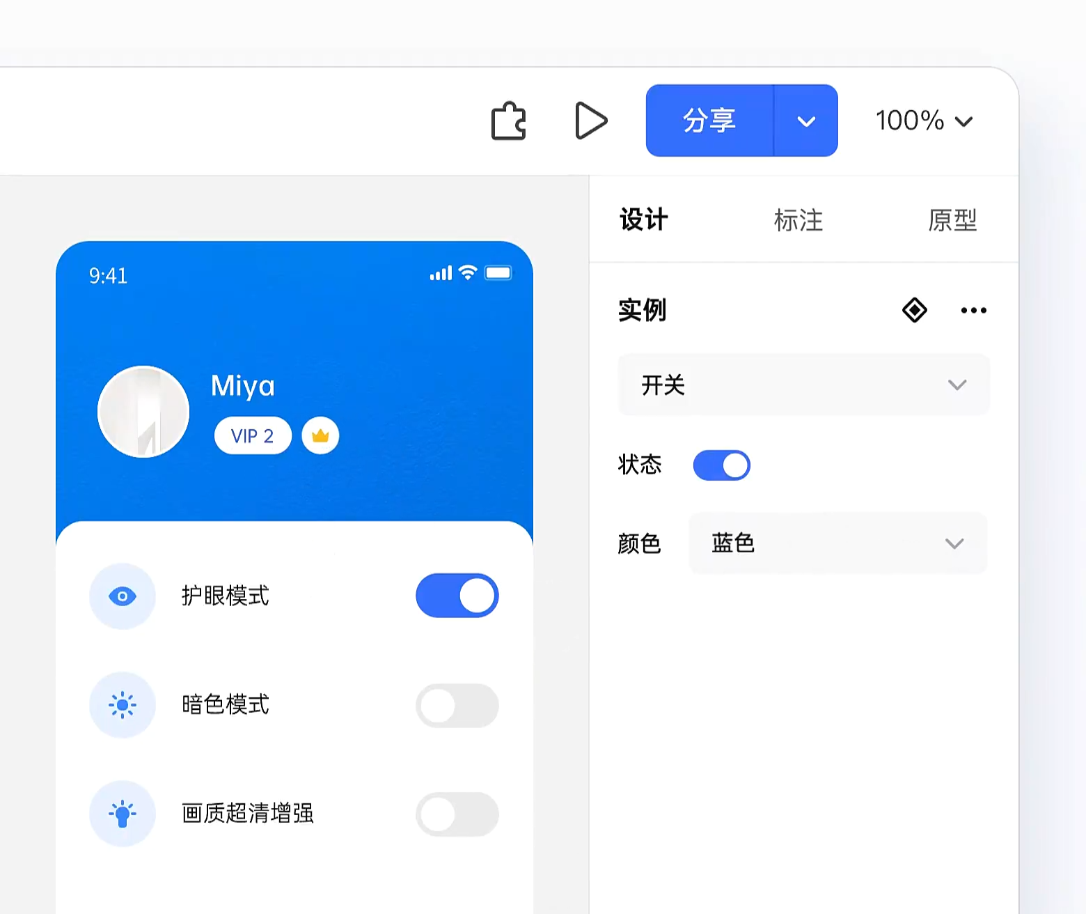 智能 UI 设计工具: Pixso 提供智能 UI 设计工具,使专业技能更容易上手。相比传统的设计工具,Pixso 自带组件变体、自动布局等专业设计工具,支持 UI/UX 设计和原型播放,一体化完成高保真产品设计。这简化了原本需要多个工具协作才能达到的效果,提高了设计的整体效率。