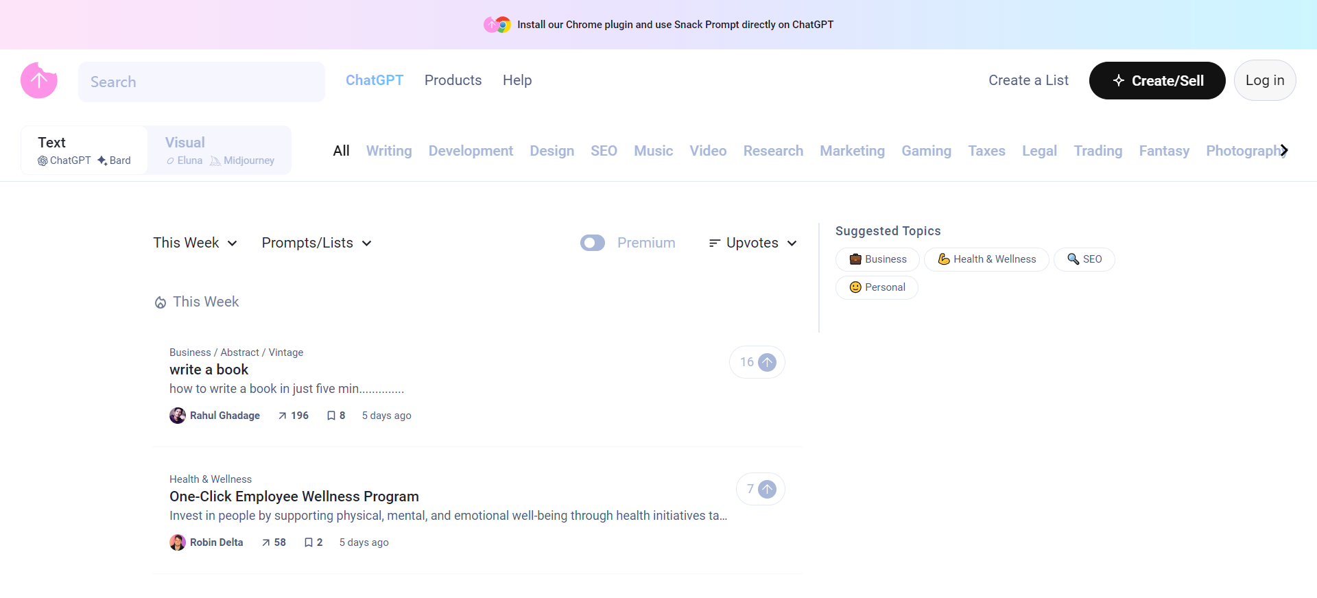 提示市场:在 Snack Prompt 上,您将能够直接向您的关注者销售定制提示,将您的专业知识转化为实际价值,为您的创意努力赋予经济回报。
