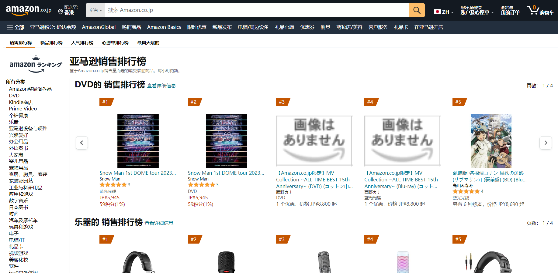 其中,每个国家的亚马逊网站都有自己独立的销售排行榜,如Amazon.co.jp上的销售排行榜。