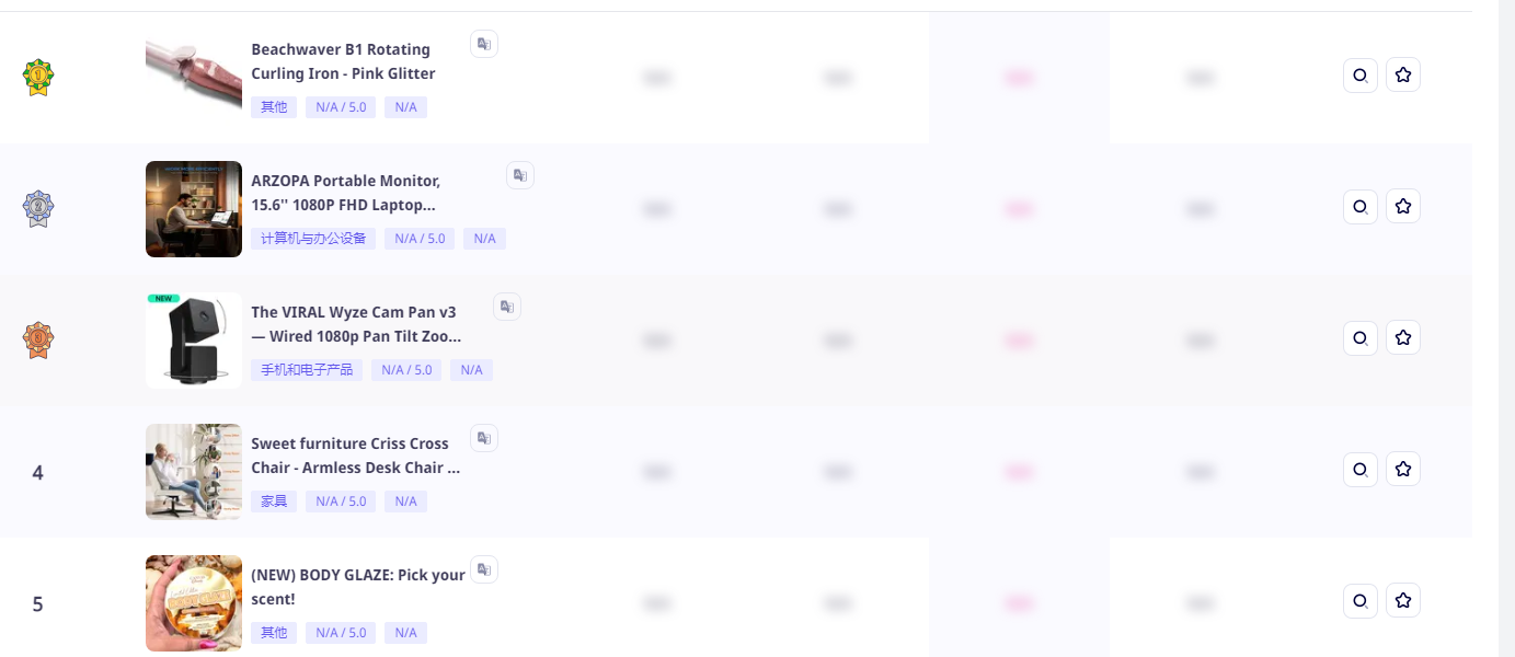 商品排行榜:展示当前在TikTok平台上最受欢迎的商品排名,根据商品的热度、点击量、点赞数等指标进行排名。